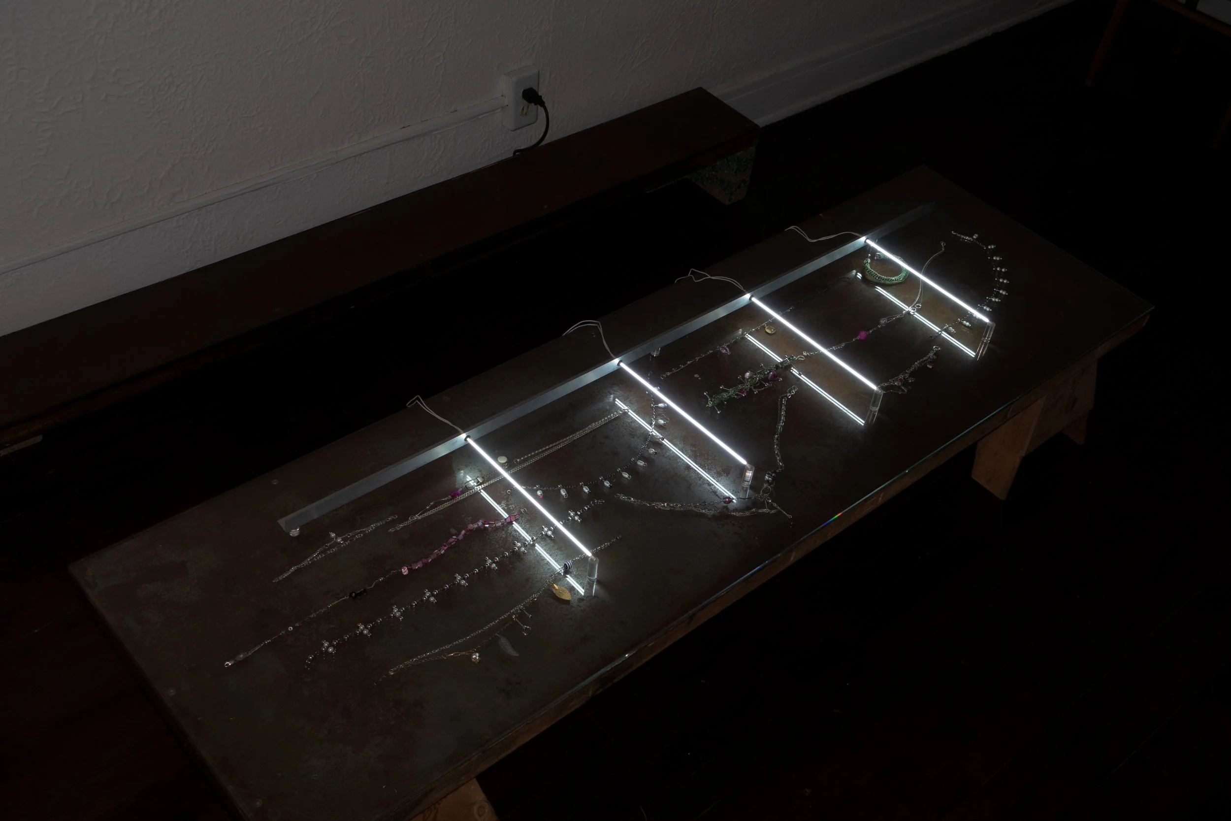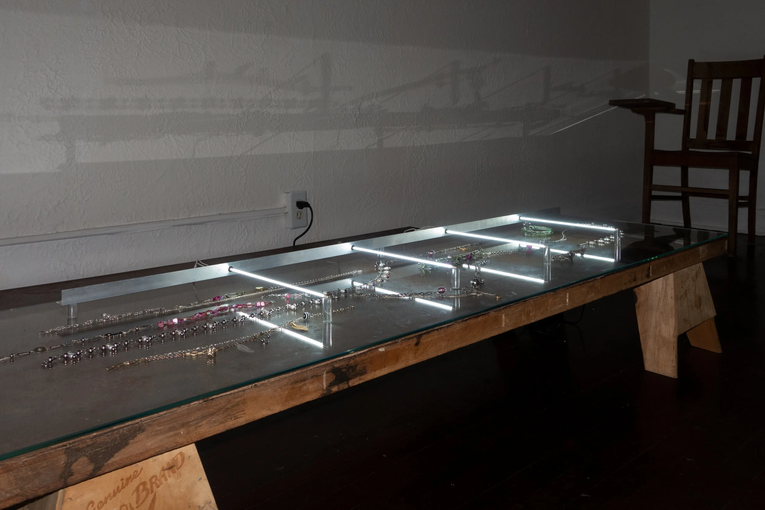 CCFL lights, aluminum and acrylic, 55 x 13 x 2 in, 2019
