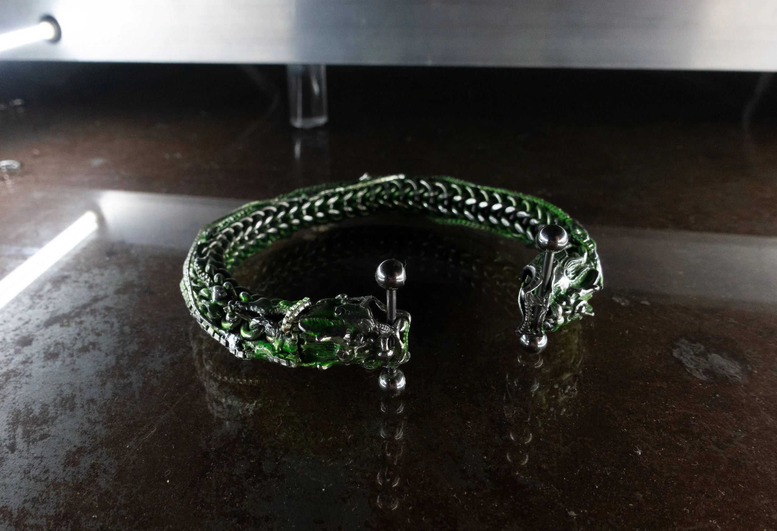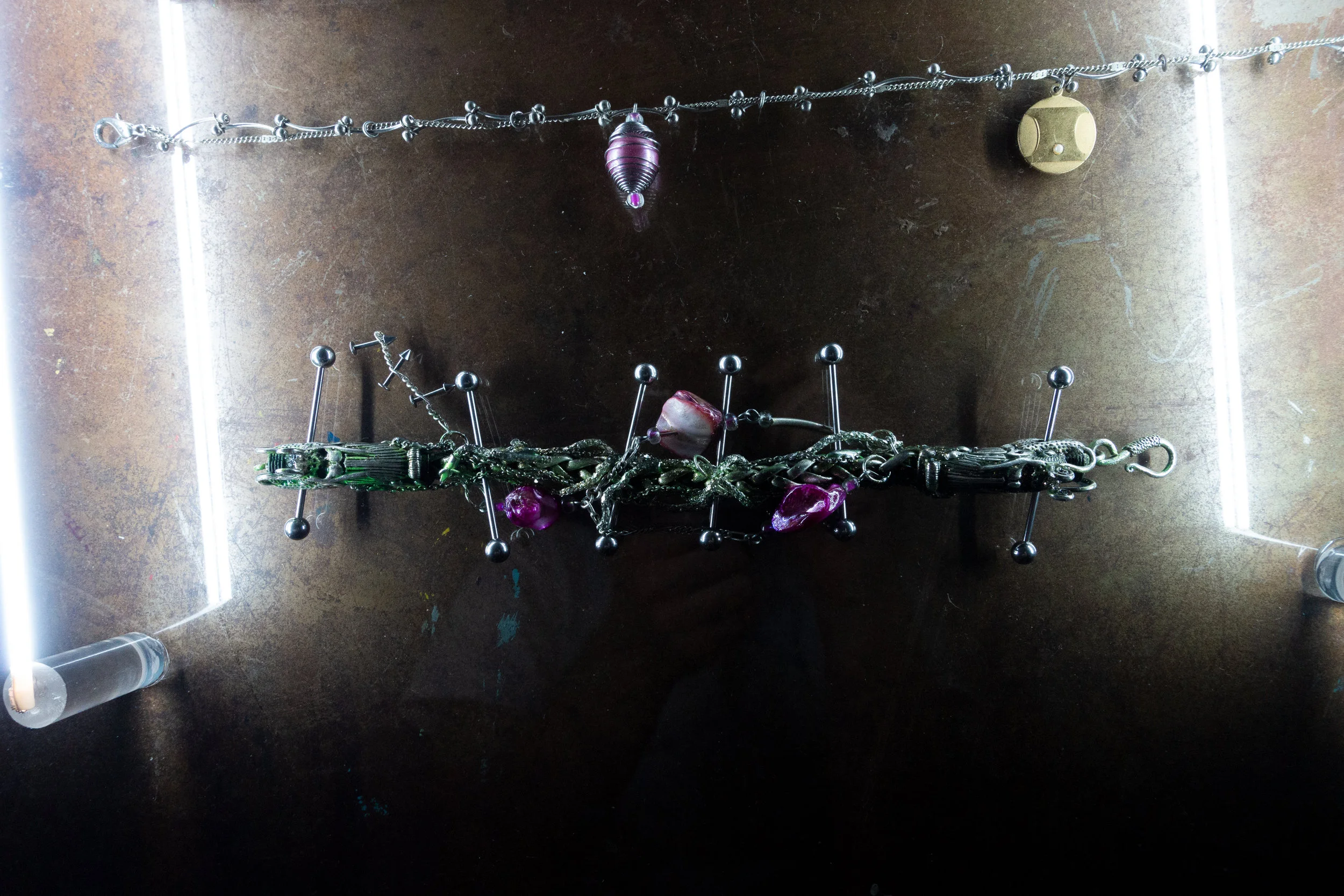 9 Untitled, sterling silver, surgical steel and nacre gem stones, airbrushed, 9 x 2 x 0.5 in, 2019